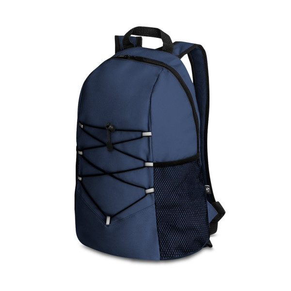 Compact rucksack designed for those looking for practicality in relaxed moments. Available in a wide range of colours.Outer material: 600D recycled polyesterCapacity (L): 14Compartments: 1 main compartmentExternal pockets: 2 side mesh pocketsBack panel: paddedAdditional features: multifunctional front elastics, reflective details 270 x 420 x 170 mm