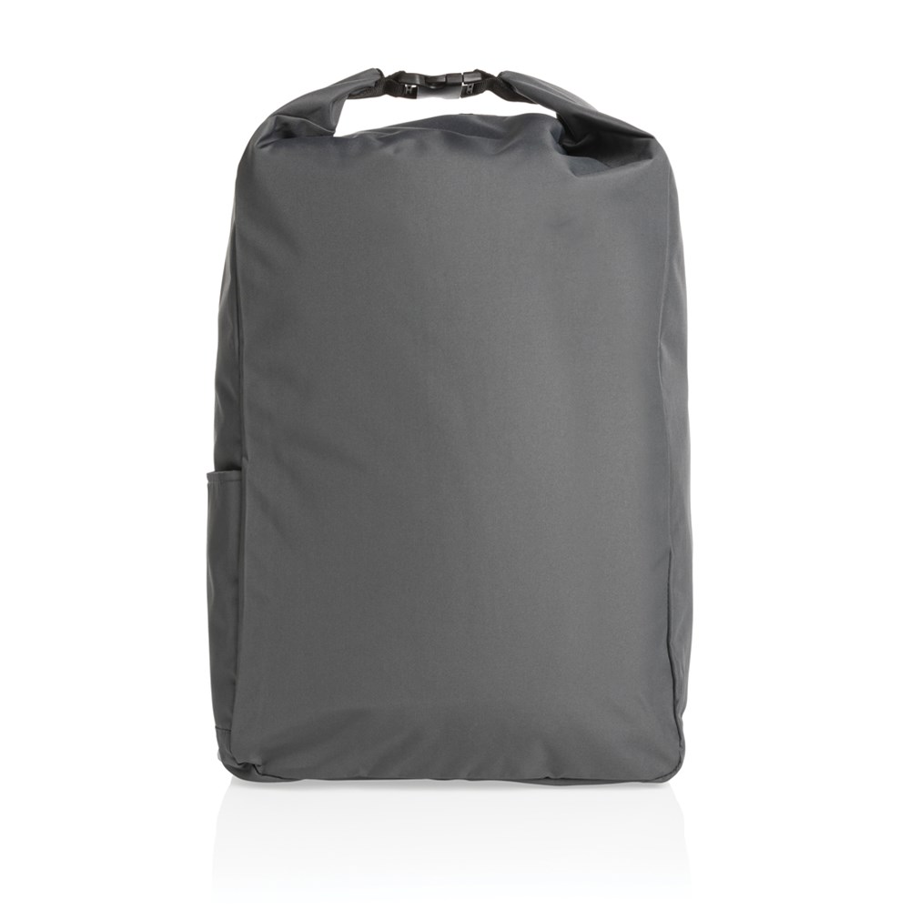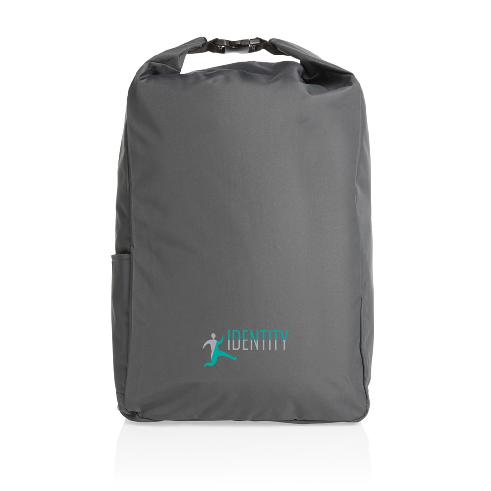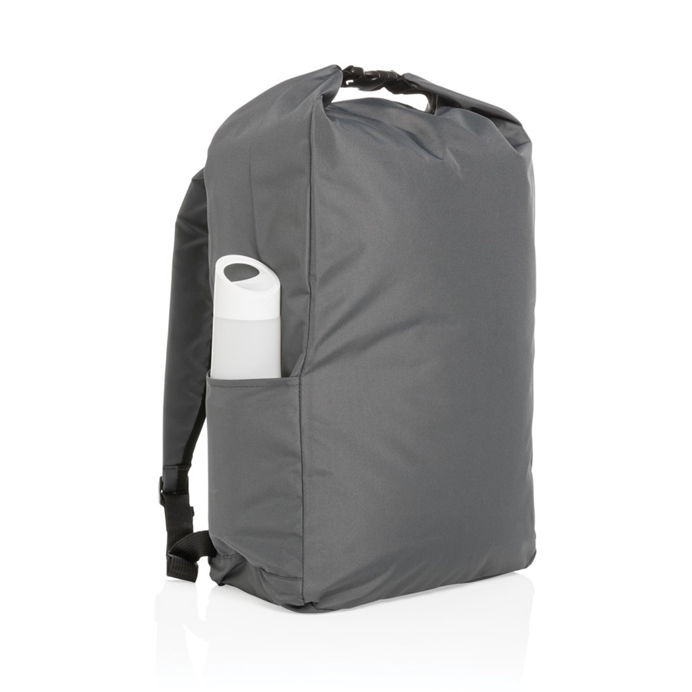 No greenwashing, but telling a true story about sustainability! This Impact 300D RPET rolltop backpack is made with AWARE™ tracer. With AWARE™, the use of genuine recycled fabric materials and water reduction impact claims are guaranteed, by using the AWARE disruptive physical tracer and blockchain technology. Save water and use genuine recycled fabrics. With the focus on water 2% of proceeds of each Impact product sold will be donated to Water.org. Keep it simple and stylish with this rolltop backpack. A perfect size for all your essentials. This backpack has reused 11,6 500ml PETbottles. Water savings are based on figures when compared to conventional fibre. This calculated indication is based on reliable LCA data as published by Textile Exchange in their Material Snapshots 2016.