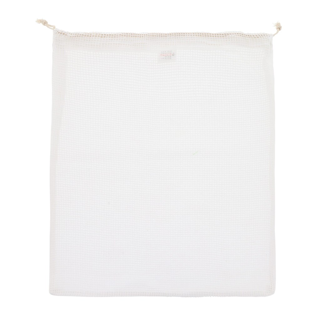 Reduce the number of plastic bags in the supermarket by using your own food bag. This cotton bag with mesh is highly suitable for fruits and vegetables. Re-use it over and over again and when dirty, simply wash it at low temperatures (could shrink).