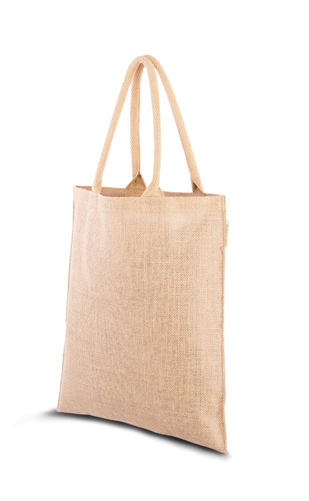 Jute fairbag deluxe. Provided with luxery padded cotton handles. Ideally dimensioned for flyers and folders.
