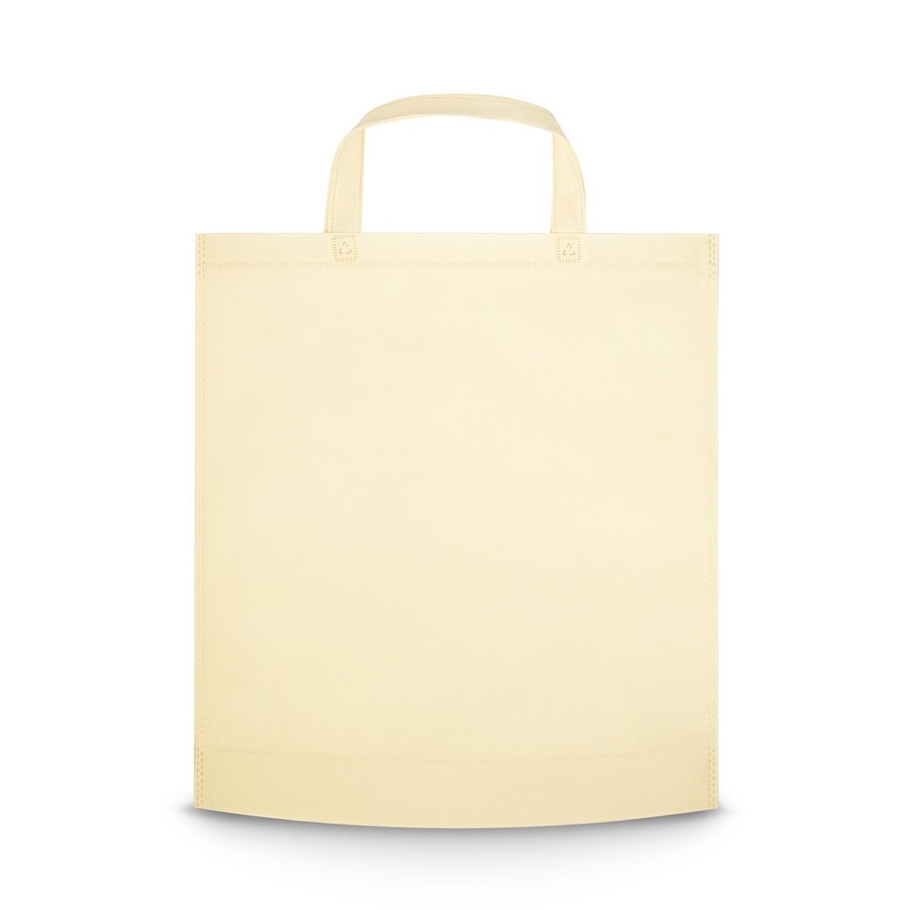 Thermo sealed non-woven bag (80 g/m²) with 38 cm handles. 380 x 415 x 85 mm