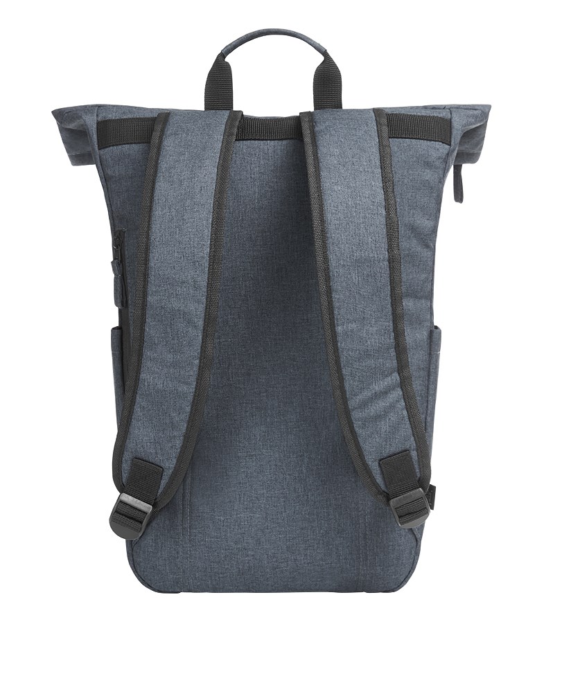 urban backpack with zipped main compartment and buckle fastening; rPET upper material; padded pocket and organizer elements inside; zipped outer pocket on side; two side pouches for bottles etc.; zipped pocket on back; padded strap system; handle