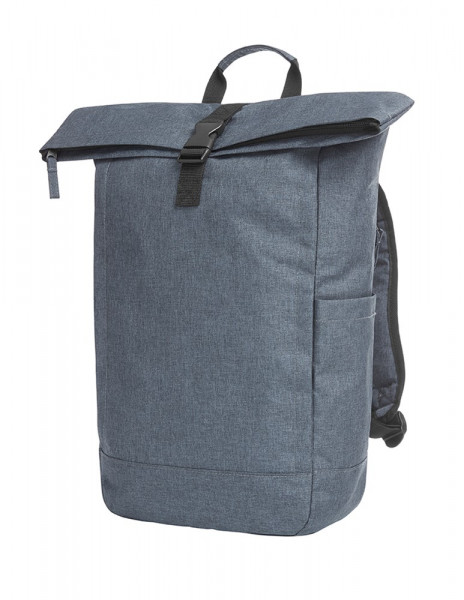 urban backpack with zipped main compartment and buckle fastening; rPET upper material; padded pocket and organizer elements inside; zipped outer pocket on side; two side pouches for bottles etc.; zipped pocket on back; padded strap system; handle