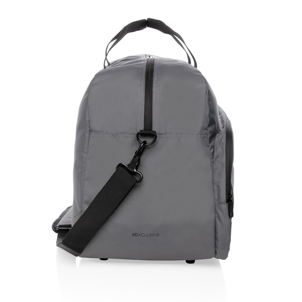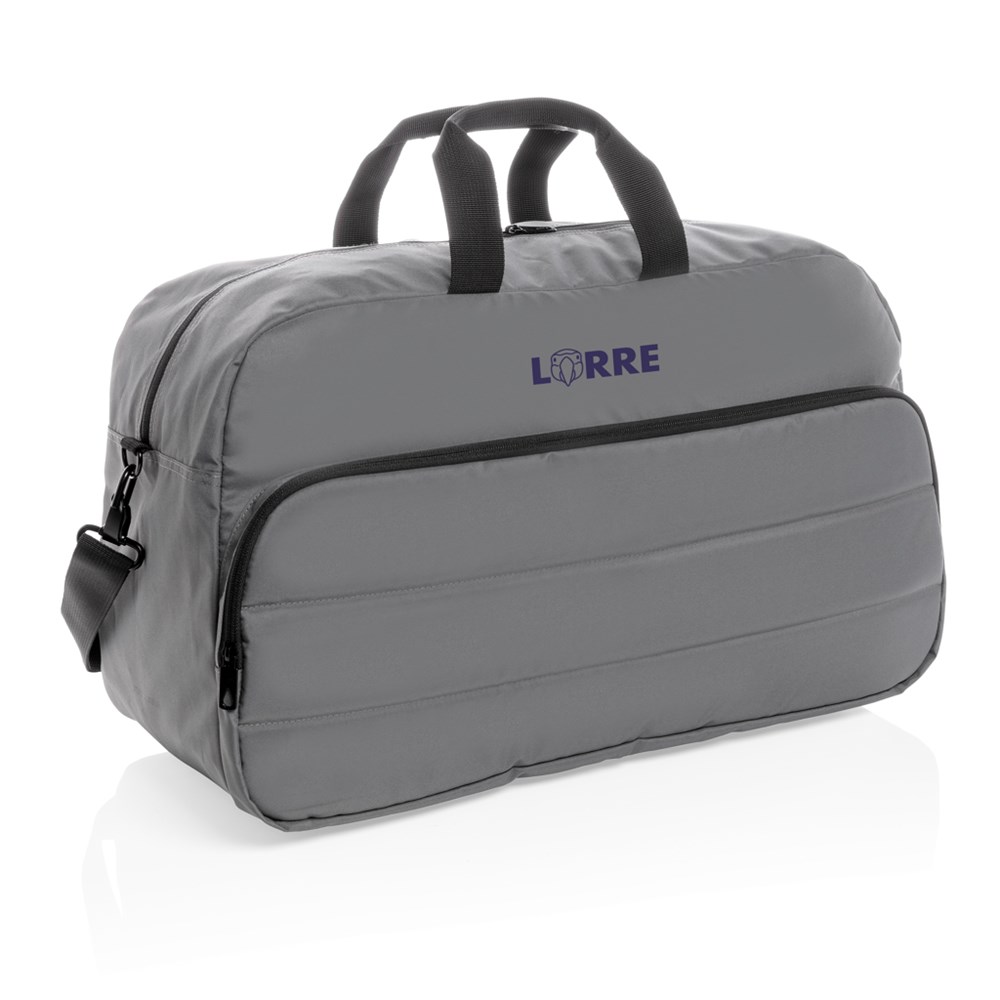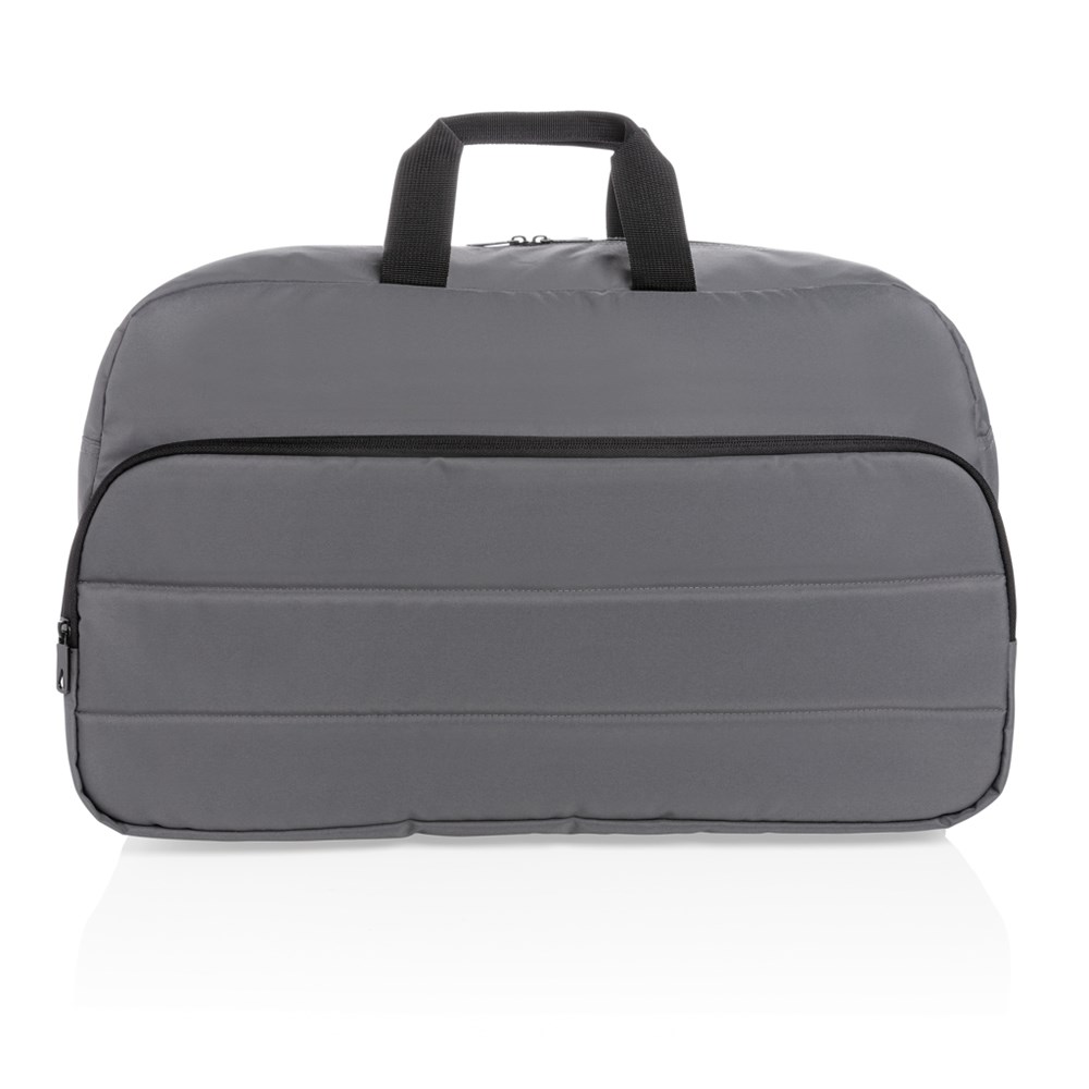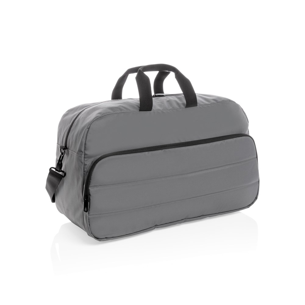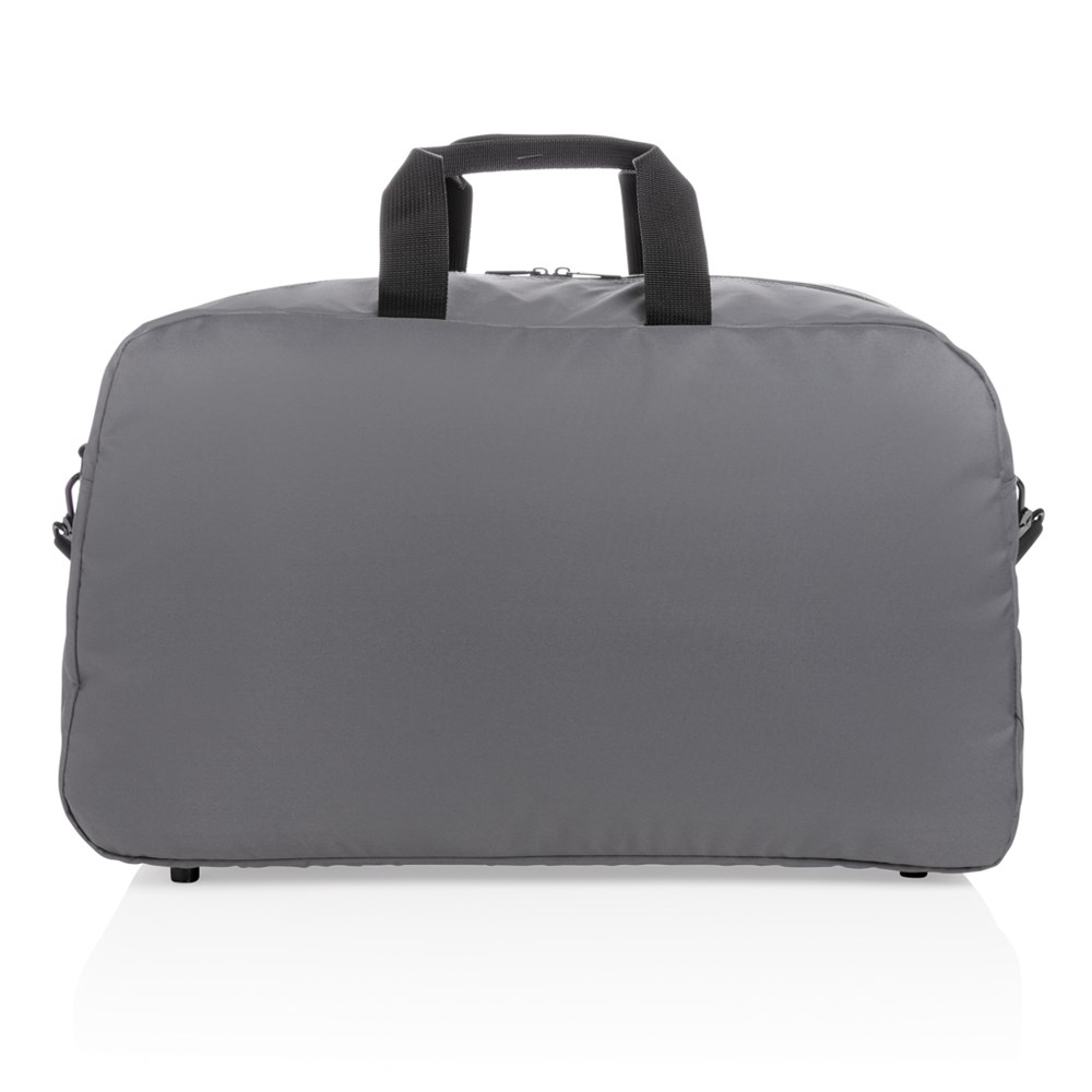 No greenwashing, but telling a true story about sustainability! This Impact collection is made with AWARE™ tracer. With AWARE™, the use of genuine recycled fabric materials and water reduction impact claims are guaranteed, by using the AWARE disruptive physical tracer and blockchain technology. Save water and use genuine recycled fabrics. If you choose this item you save 27 litres of water and 45 plastic bottles have been reused. With the focus on water, 2% of proceeds of each Impact product sold will be donated to Water.org. The AWARE™ weekend duffle impresses with its modern and simple look. Its clean design makes the duffle ideal for travel. The roomy main compartment offers plenty of space for your essentials. Two mesh pockets make your smaller items easy to find. The front zipper pockets have 2 sleeve pockets and 2 pen loops. Interior and exterior 100% recycled polyester with AWARE™ tracer. PVC free. Impact savings are based on reliable LCA data from the Textile Exchange