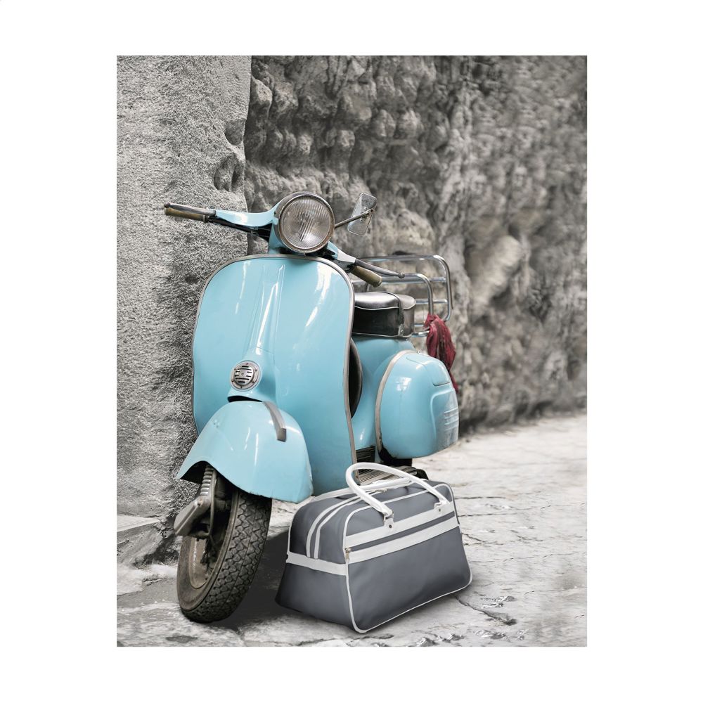 PVC/PU sports bag with a classic 70's look with lined inner, roomy main compartment and zipped... more