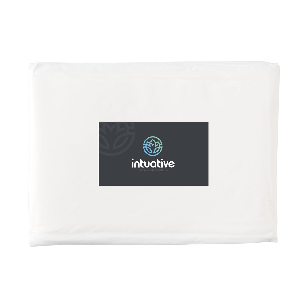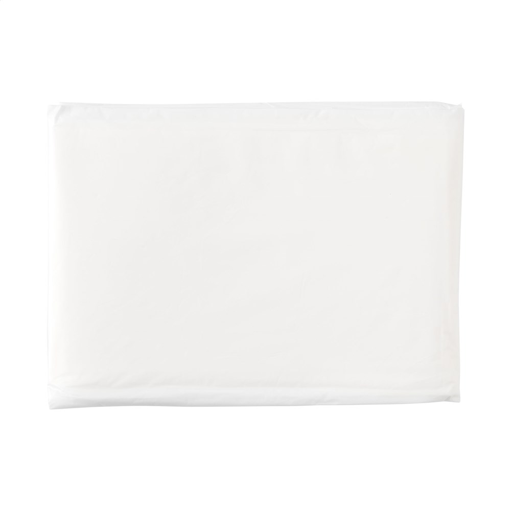 This reusable poncho is made from waste from corn production: 4% PLA, 60% PBAT and 36% cornstarch. The starch that remains as a by-product is called PLA. To make a kind of plastic (PLA) of maize, the maize grains are mixed with sulfur dioxide in hot water, so that all components in this mixture develop again into starch, proteins and fibres. The fibers are made into a kind of plastic, which can be used to develop a poncho. This material is 100% biodegradable and 100% compostable. Packed in a slipcover also made of the same material as the poncho itself. Unfolded dimensions, measured without hood: 100 x 125 cm.