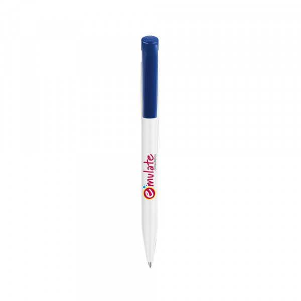 Blue ink ballpoint pen by Stilolinea®, with coloured clip and point. Made in Italy.