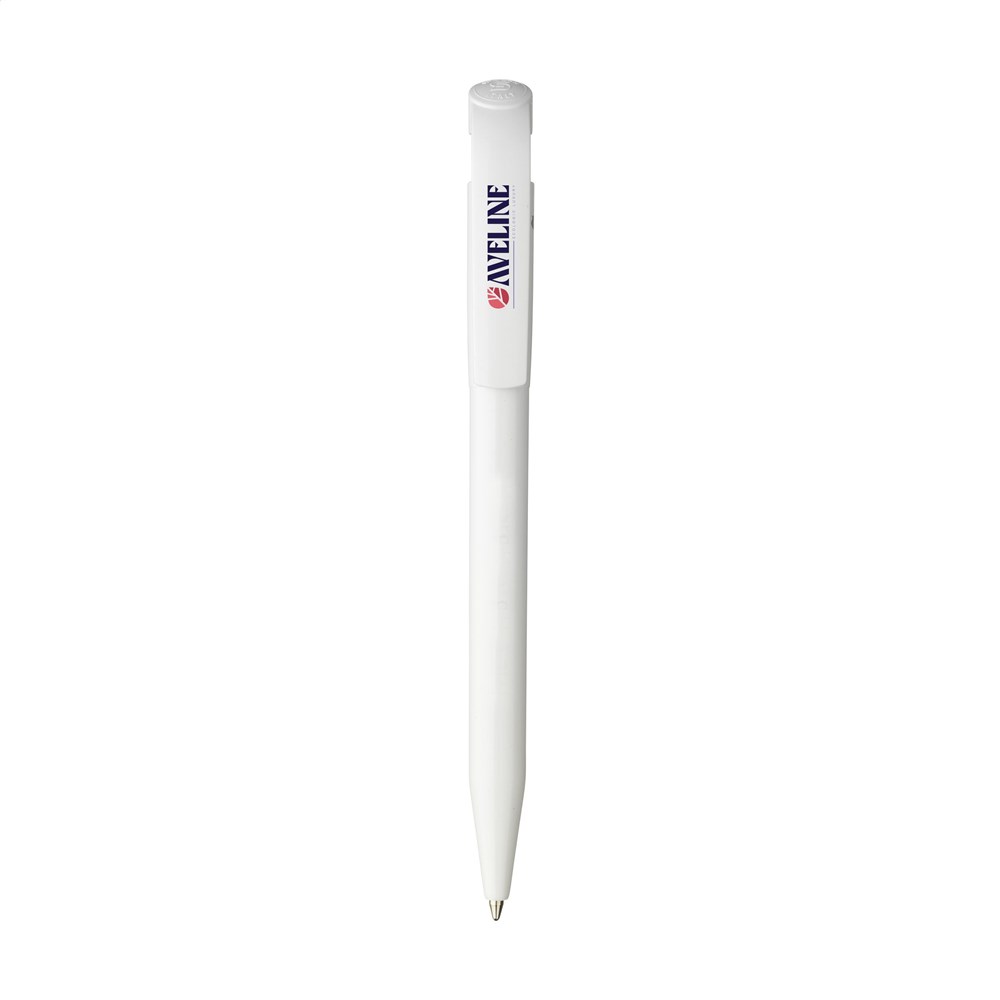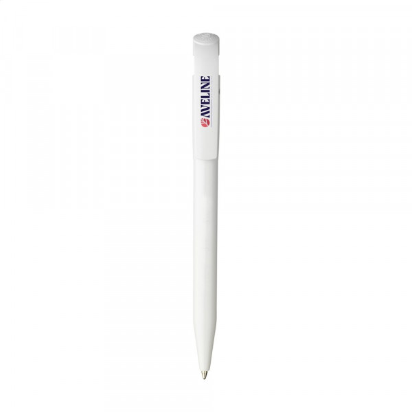 Ballpoint pen by Stilolinea®. The barrel is made from 100% recycled plastic. With blue ink and large clip/push button. Made in Italy.