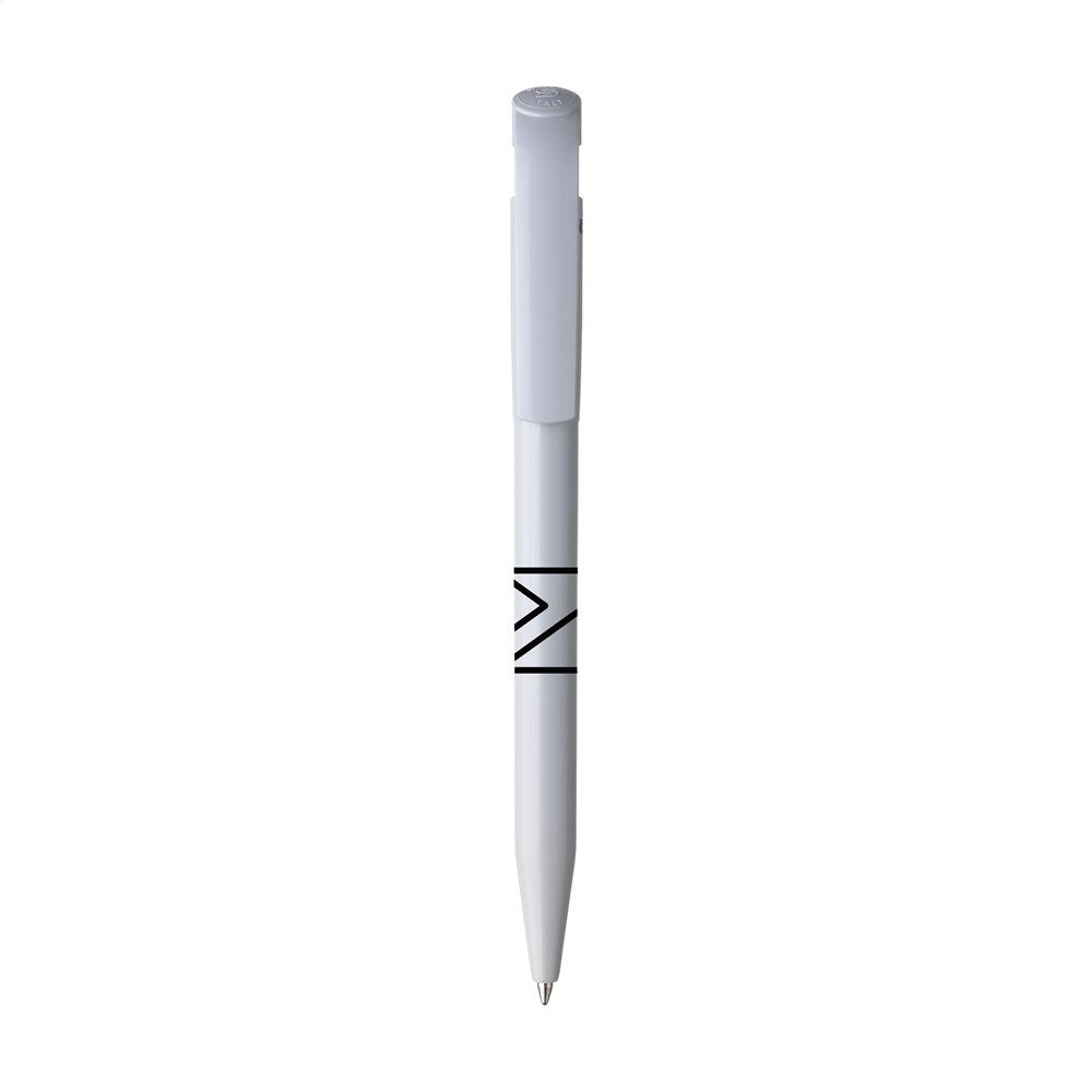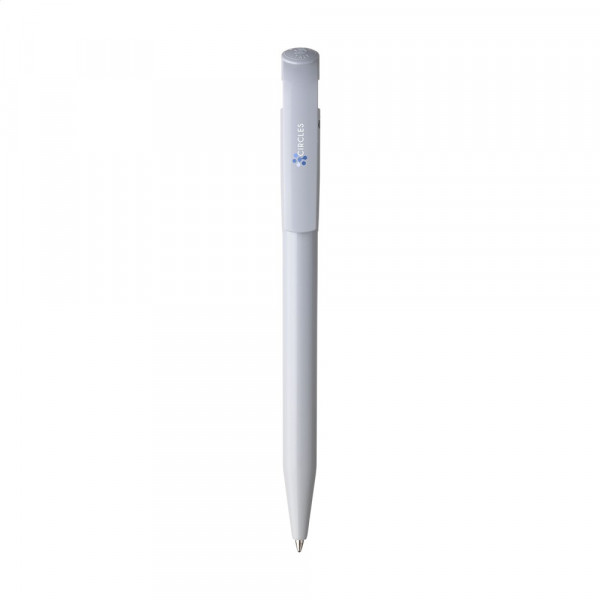Ballpoint pen by Stilolinea®. The barrel is made from 100% recycled plastic. With blue ink and large clip/push button. Made in Italy.