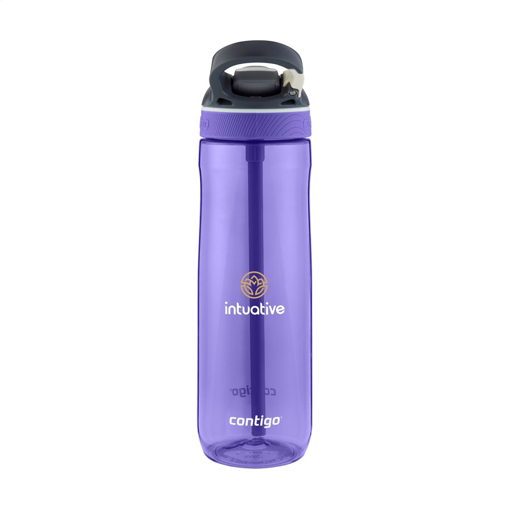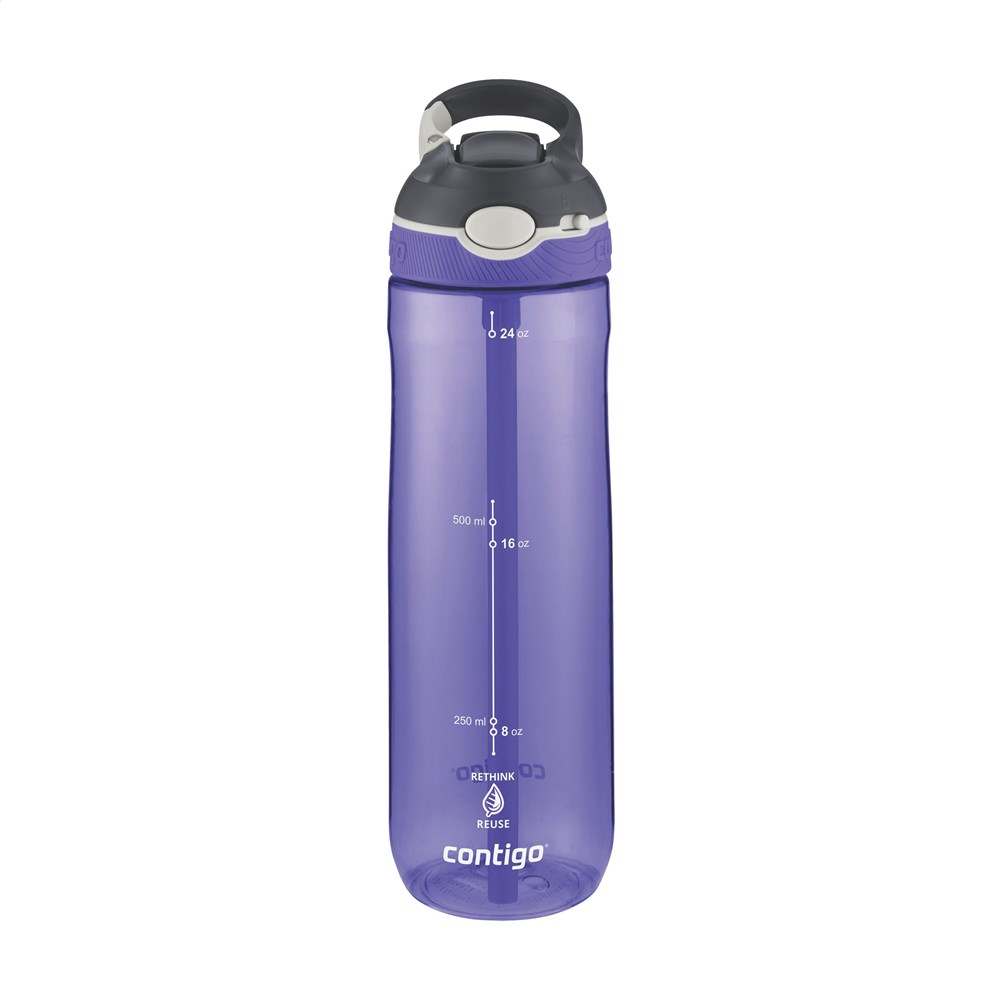 Stylish and easy-to-use Contigo® water bottle made from clear Tritan™ Renew from Eastman. With 50% recycled material without compromising quality. The bottle is equipped with AUTOSPOUT™ technology, a unique locking system, and with a carabiner. Lid and body are top-rack dishwasher-safe. Washing by hand is recommended to preserve the imprint. Capacity 720 ml. STOCK AVAILABILITY: Up to 1000 pcs accessible within 10 working days plus standard lead-time. Subject to availability. Contigo: The best in quality, design and technology. Immediately recognisable by its sleek and stylish design, strong and solid. The innovative water bottles and thermo cups are odourless, tasteless and BPA-free. The drinking bottles are operated one-handed and guaranteed to be 100% leak-free, so can be used anywhere, anytime, also on the go. Comes with a 2-year manufacturer's warranty.