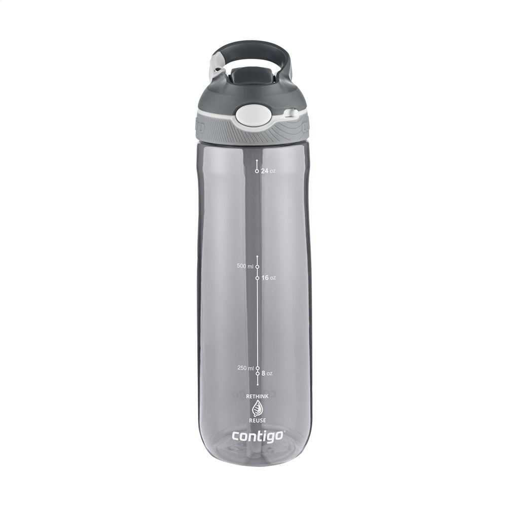 Stylish and easy-to-use Contigo® water bottle made from clear Tritan™ Renew from Eastman. With 50% recycled material without compromising quality. The bottle is equipped with AUTOSPOUT™ technology, a unique locking system, and with a carabiner. Lid and body are top-rack dishwasher-safe. Washing by hand is recommended to preserve the imprint. Capacity 720 ml. STOCK AVAILABILITY: Up to 1000 pcs accessible within 10 working days plus standard lead-time. Subject to availability. Contigo: The best in quality, design and technology. Immediately recognisable by its sleek and stylish design, strong and solid. The innovative water bottles and thermo cups are odourless, tasteless and BPA-free. The drinking bottles are operated one-handed and guaranteed to be 100% leak-free, so can be used anywhere, anytime, also on the go. Comes with a 2-year manufacturer's warranty.