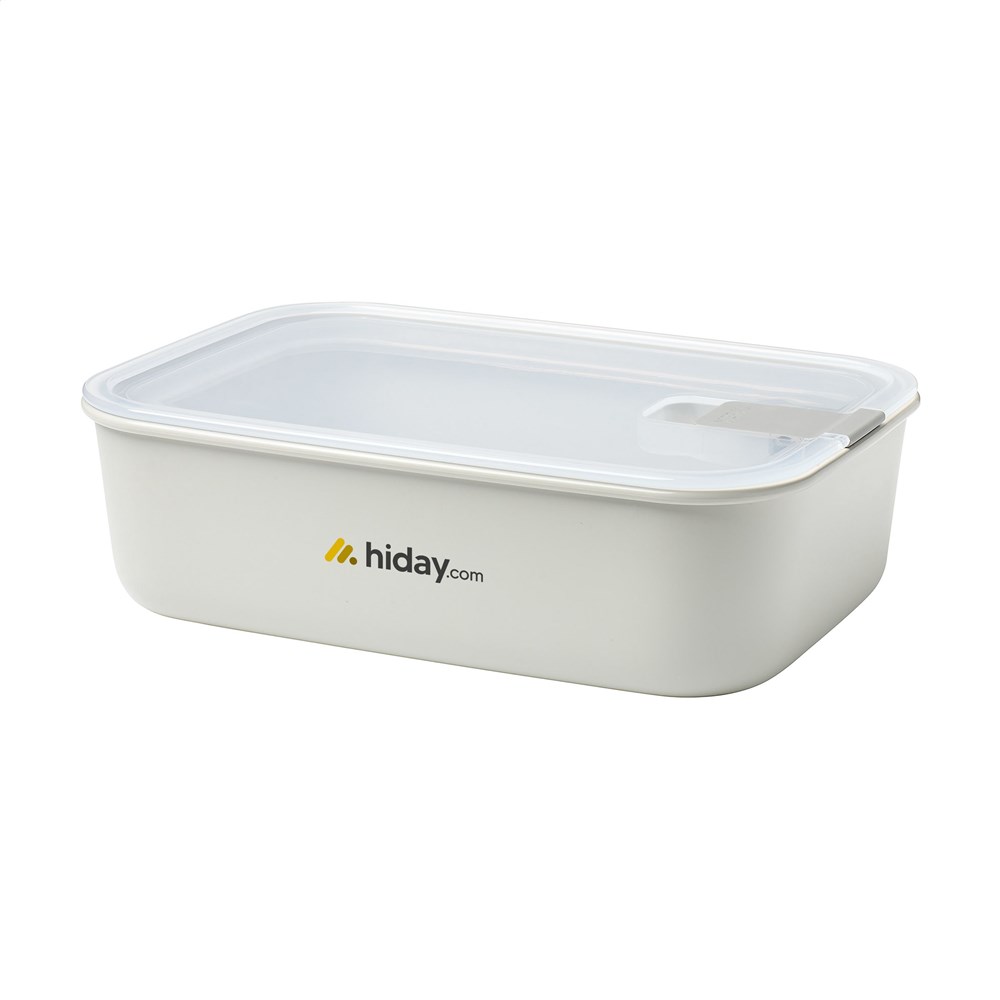 Durable and space-saving plastic food container with a click lid, from the Mepal brand. 100% recyclable. With just one click the box becomes leakproof and airtight. Perfect for storing leftovers, pre-cut vegetables and salads, but also for heating meals. The transparent lid allows you to see at a glance what is in this stackable box. Compact and easy to store. The lid has a unique steam valve that you must open when you place the box into the microwave. This box is also suitable for the steam oven and freezer. This box is supplied with a 2-year Mepal factory warranty. Capacity 1,000 ml. Made in Holland. STOCK AVAILABILITY: Up to 1000 pcs accessible within 10 working days plus standard lead-time. Subject to availability.