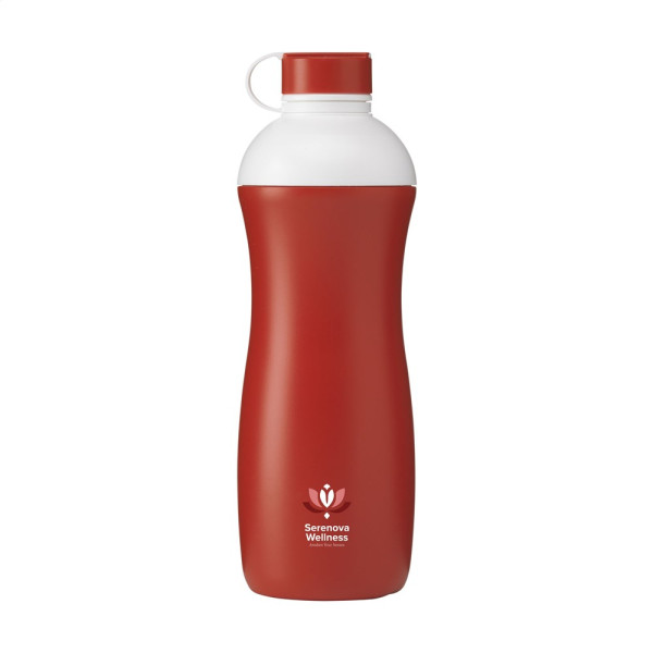 This super light water bottle is made from Bio HDPE. A 100% recyclable material created from sugarcane-based raw materials. This bottle has a large opening for easy refilling and cleaning and a small drinking opening with a fixed screw cap. Leakproof and Food Approved. Not dishwasher-safe. Capacity 500 ml. Made in Holland.