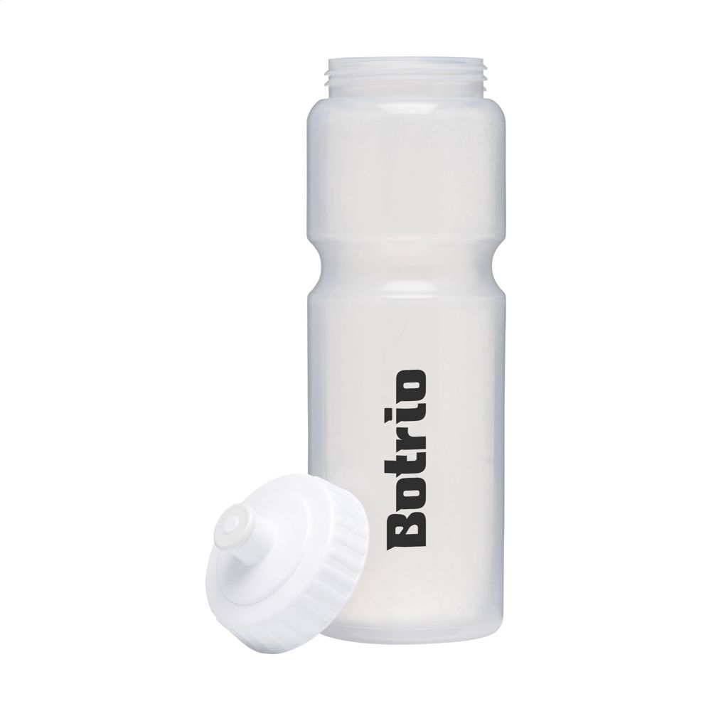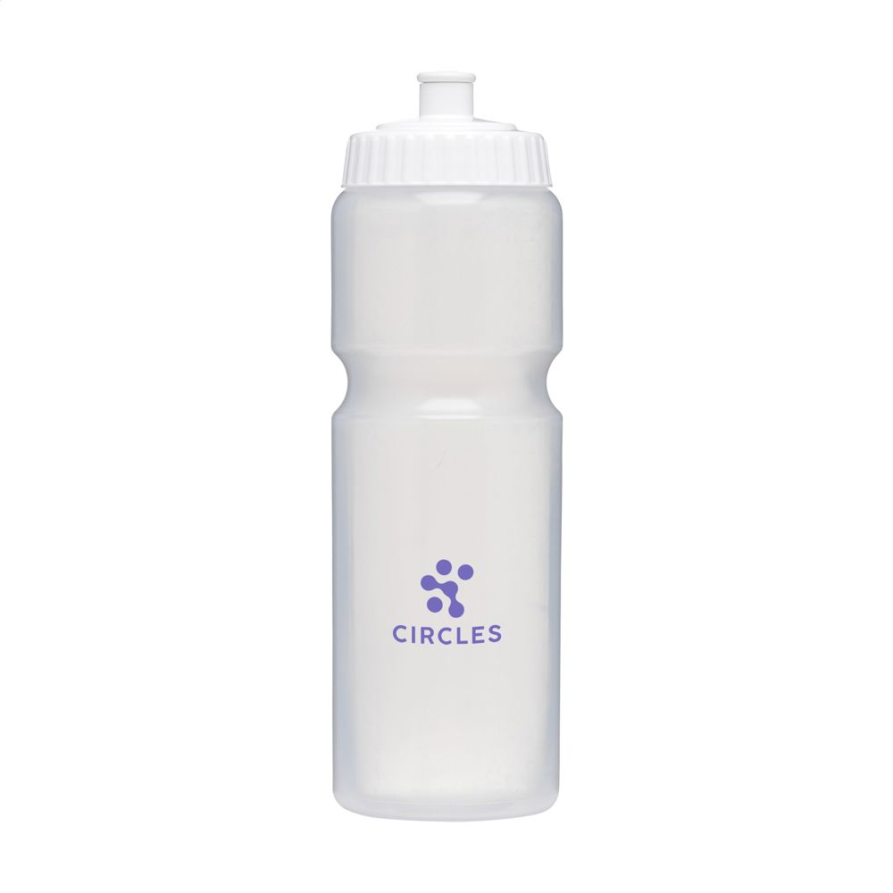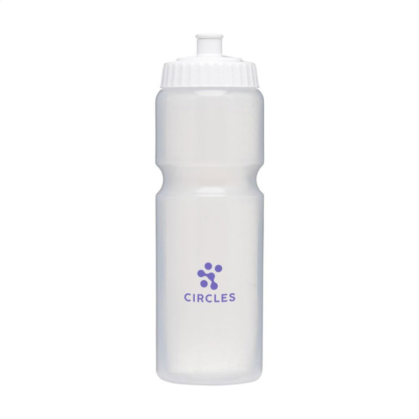 This practical sports water bottle is made from Bio LDPE, a 100% recyclable material from sugarcane-based raw materials. With a screw cap for easy refilling and cleaning. The colour of the handy drinking stopper matches the body of the bottle. The body has a narrower part for ease of holding. Leakproof. Not dishwasher-safe. A perfect thirst quencher during sporting activities. Capacity 750 ml. Made in Holland.