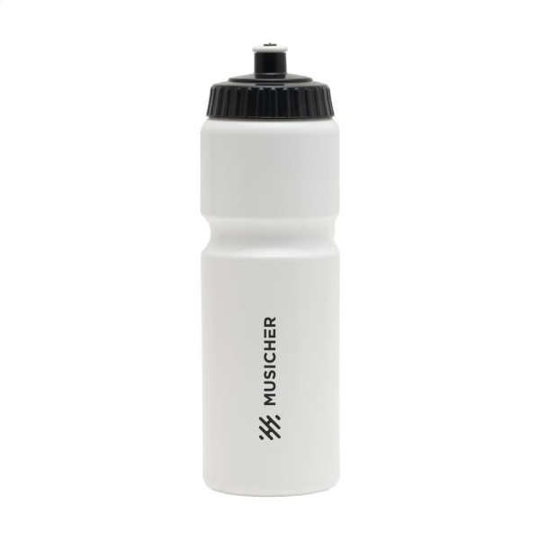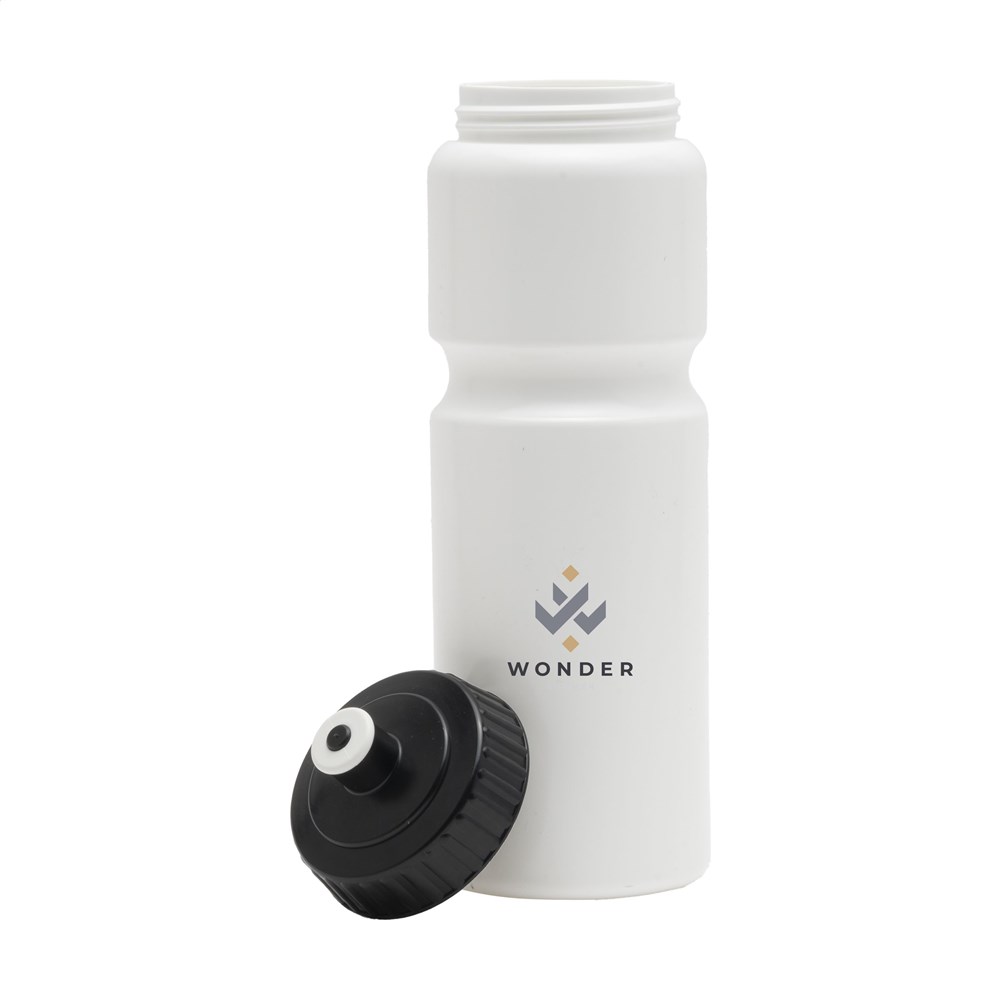 This practical sports water bottle is made from Bio LDPE, a 100% recyclable material from sugarcane-based raw materials. With a screw cap for easy refilling and cleaning. The colour of the handy drinking stopper matches the body of the bottle. The body has a narrower part for ease of holding. Leakproof. Not dishwasher-safe. A perfect thirst quencher during sporting activities. Capacity 750 ml. Made in Holland.