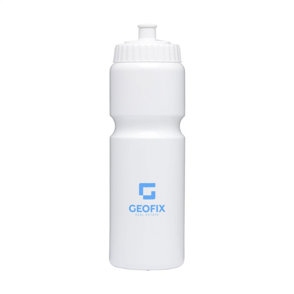This practical sports water bottle is made from Bio LDPE, a 100% recyclable material from sugarcane-based raw materials. With a screw cap for easy refilling and cleaning. The colour of the handy drinking stopper matches the body of the bottle. The body has a narrower part for ease of holding. Leakproof. Not dishwasher-safe. A perfect thirst quencher during sporting activities. Capacity 750 ml. Made in Holland.