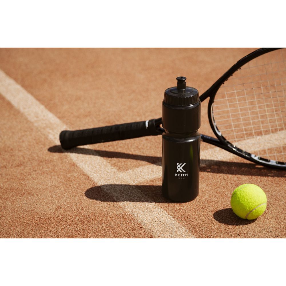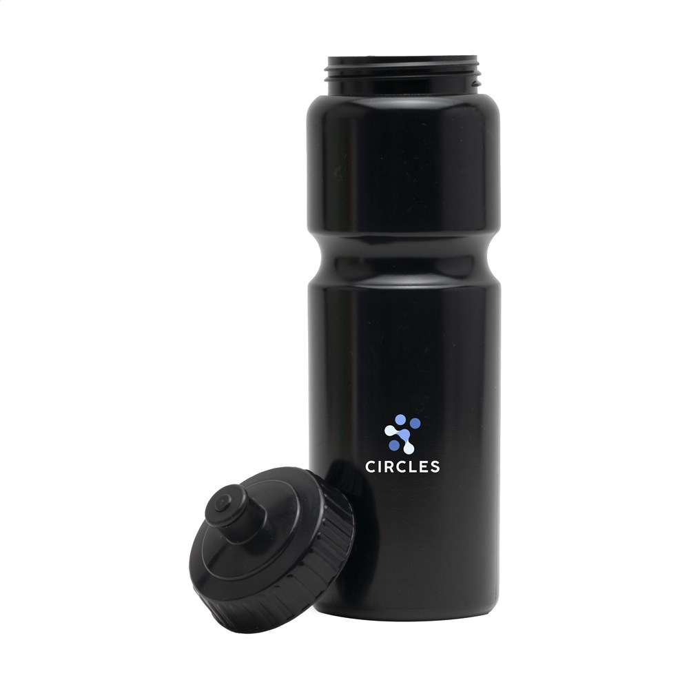 This practical sports water bottle is made from Bio LDPE, a 100% recyclable material from sugarcane-based raw materials. With a screw cap for easy refilling and cleaning. The colour of the handy drinking stopper matches the body of the bottle. The body has a narrower part for ease of holding. Leakproof. Not dishwasher-safe. A perfect thirst quencher during sporting activities. Capacity 750 ml. Made in Holland.
