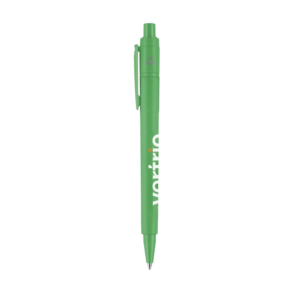 Blue ink ballpoint pen by Stilolinea®. Made from 100% recycled ABS plastic from post-consumption of electronic and/or discarded devices. With a standard imprint of the recycling symbol beside the clip. A responsible choice. Made in Italy.