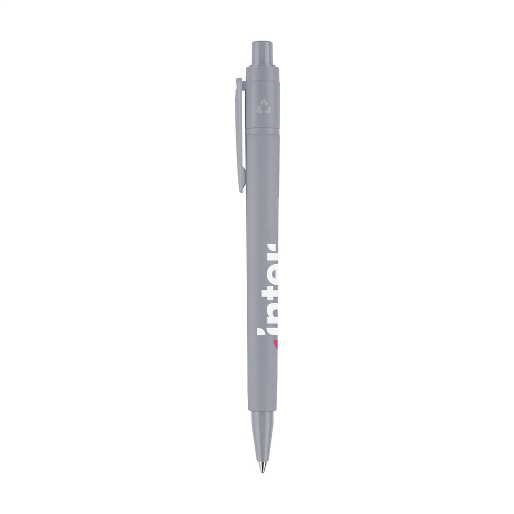 Blue ink ballpoint pen by Stilolinea®. Made from 100% recycled ABS plastic from post-consumption of electronic and/or discarded devices. With a standard imprint of the recycling symbol beside the clip. A responsible choice. Made in Italy.
