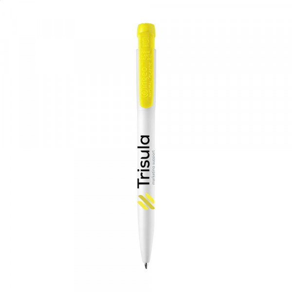 Ballpoint pen with blue ink refill by Stilolinea®. The matte finish barrel is made from Ingeo® PLA plastic. Ingeo® is a plastic made from plant fibres, making these pens 80% biodegradable and compostable. In addition, only one third of the energy is required for the production of PLA pens compared to the production of standard ABS plastic. Each pen features the Ingeo logo on the coloured clip/push button to show your clients your commitment to sustainable products. Made in Italy.