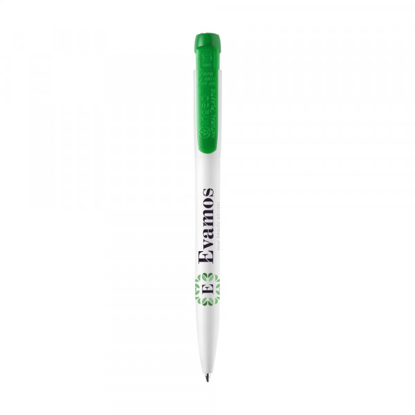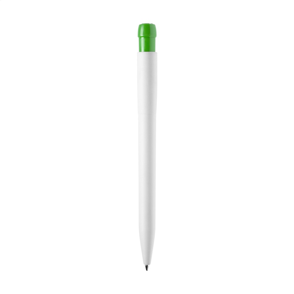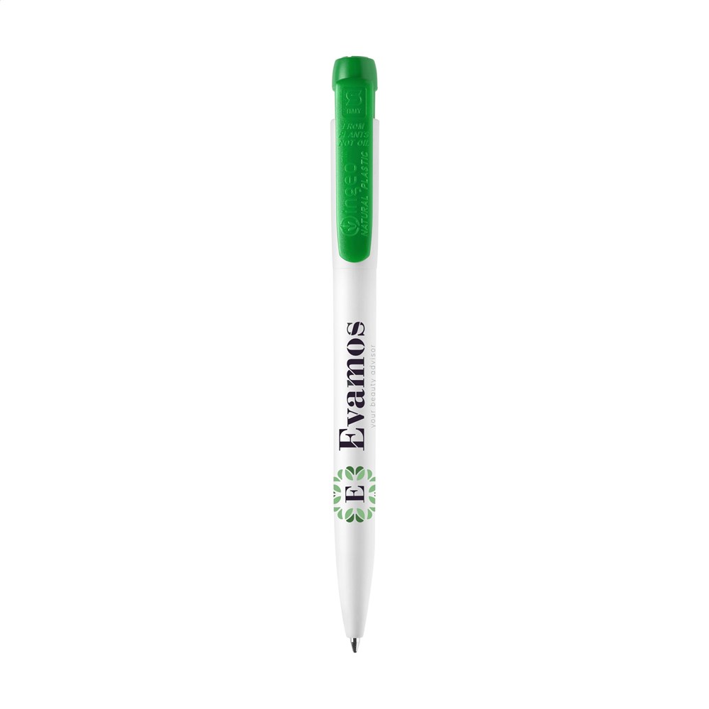 Ballpoint pen with blue ink refill by Stilolinea®. The matte finish barrel is made from Ingeo® PLA plastic. Ingeo® is a plastic made from plant fibres, making these pens 80% biodegradable and compostable. In addition, only one third of the energy is required for the production of PLA pens compared to the production of standard ABS plastic. Each pen features the Ingeo logo on the coloured clip/push button to show your clients your commitment to sustainable products. Made in Italy.
