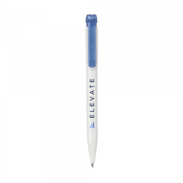 Blue ink ballpoint pen by Stilolinea®, with translucent coloured clip and push button. Made in... more
