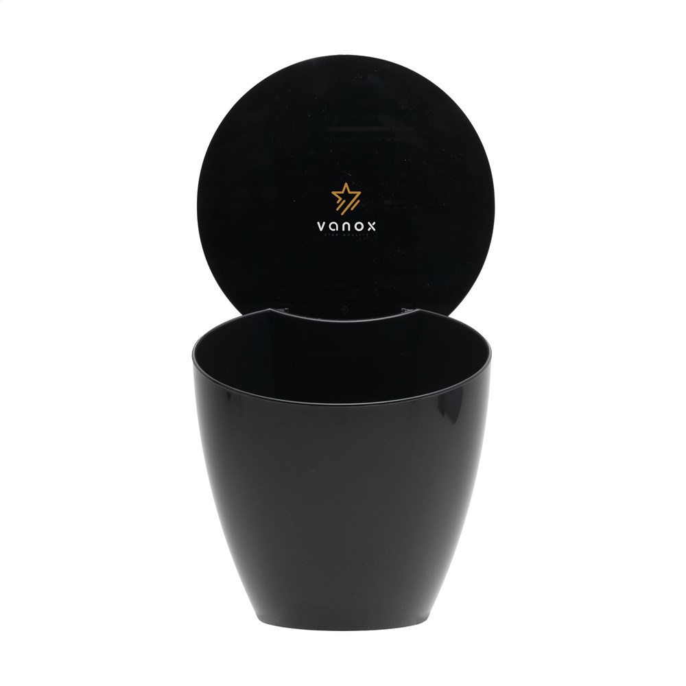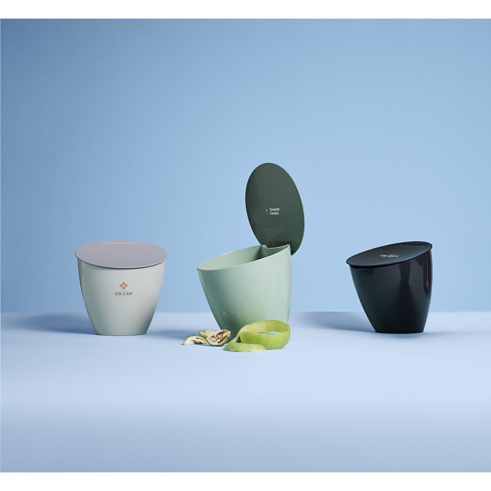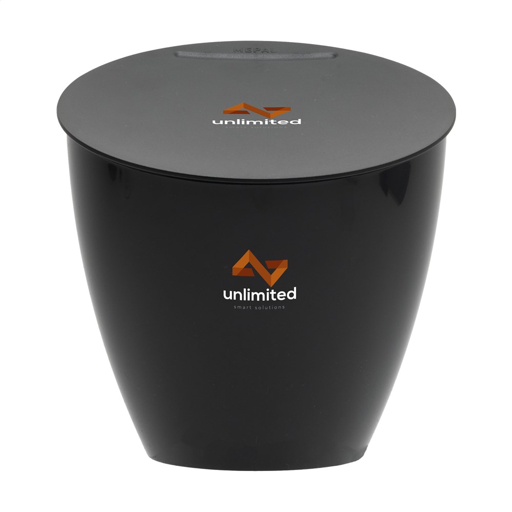 Practical waste bin from the Mepal brand. Made from 100% recycled PP and ABS. The bin has a capacity of 2.2 litres and a large opening. An ideal waste bin for the countertop. Easy to open, move and clean. The lid can remain in the open position. Handy for collecting coffee pods, food scraps and small kitchen waste. Dishwasher safe placed in the top drawer. However, hand washing is recommended to preserve the imprint. Made in Holland. STOCK AVAILABILITY: Up to 1000 pcs accessible within 10 working days plus standard lead-time. Subject to availability.