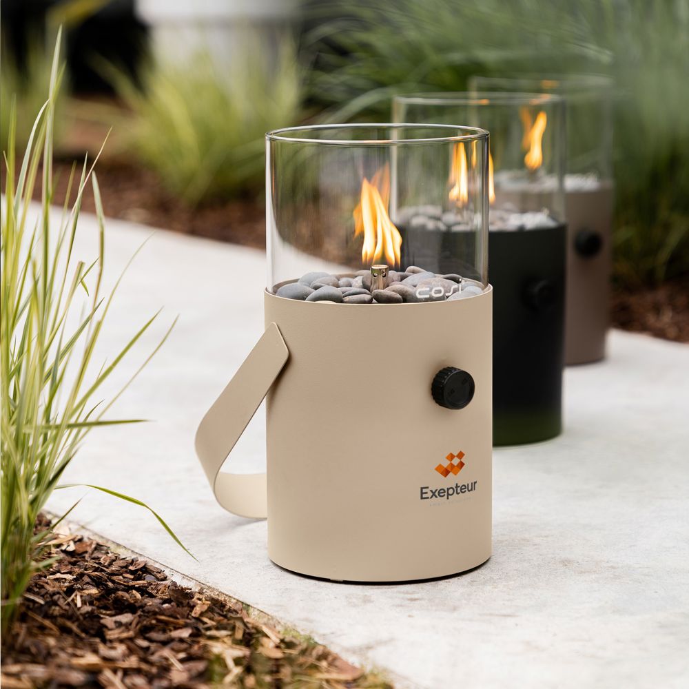 Gas lantern from the Cosi brand. This gas lantern is made from sturdy metal, finished with a powder coating, and a transparent glass. A unique mood maker for in the garden and in the house. This luxury table model can be placed anywhere, thanks to the handy carrying handle. The lantern runs on a 190 gram propane/butane gas cartridge (not included). Burning time: 5 to 6 hours on one gas cartridge. Including transparent glass and pebbles. Packed individually.