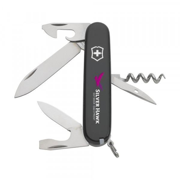 Original Swiss pocket knife from the Victorinox Officer's line: with ABS handle, connecting plates made of hard-anodised aluminium and tools made from 100% recycled steel. 8-pieces with 12 functions: large knife, small knife, corkscrew, can opener with small screwdrive, bottle opener with large screwdriver, wire stripper, reamer with punch and sewing awl, keyring, tweezers and toothpick. Includes instruction manual and lifetime warranty on material and manufacturing defects. Victorinox knives are a worldwide symbol for reliability, functionality and perfection. Please note local rules may apply regarding the possession and/or carrying of knives or multitools in public. Packed individually.