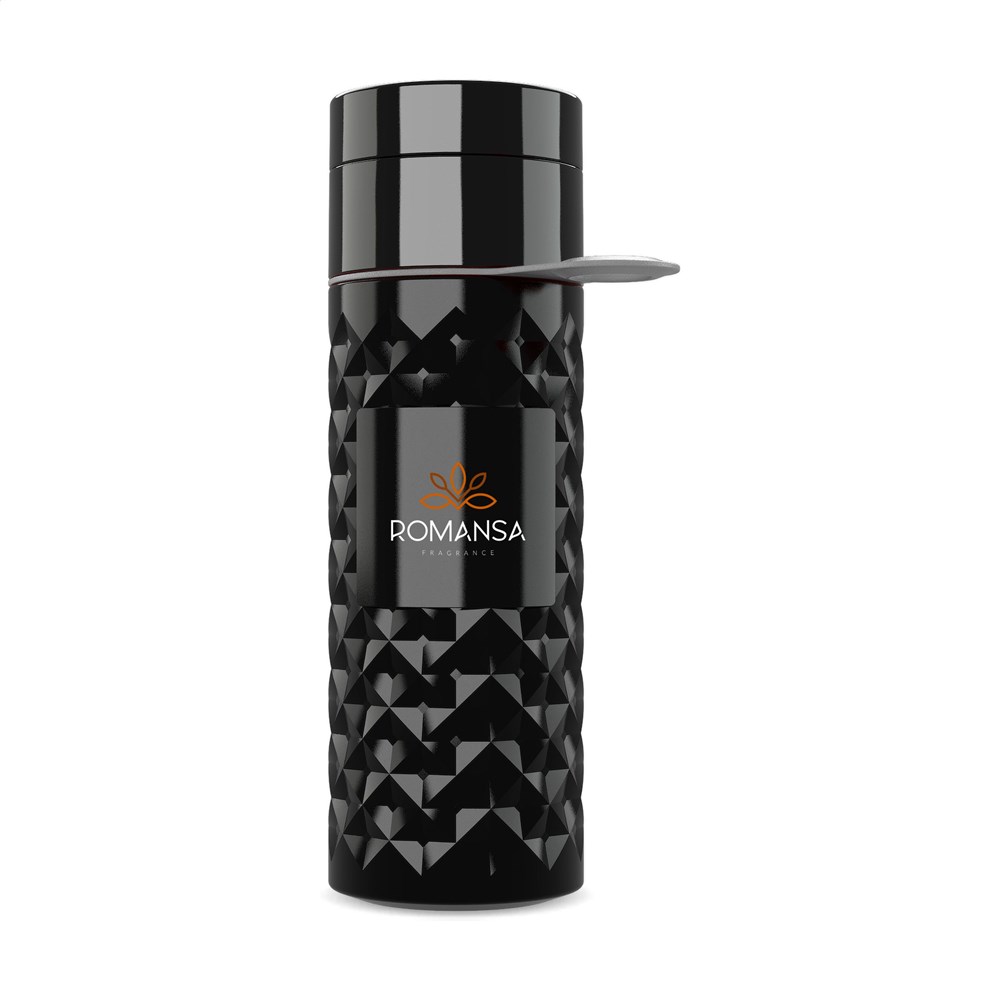 Reusable water bottle from the Join The Pipe brand. This bottle is made from Bio HDPE. This plastic is made from the waste of the sugar cane plant. A beautiful 3D diamond pattern gives the bottle a striking appearance. The bottle has 2 openings both with screw caps: a drinking opening and a generous opening for adding ice cubes and making the bottle easy to clean. Supplied with a handy rubber carrying strap. Leakproof and BPA-free. Dishwasher safe up to 65°C. Washing by hand is recommended to preserve de print. Capacity 500 ml. Made in Holland.