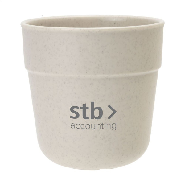 Reusable coffee cup from the BE O Lifestyle brand. A stackable cup in a handy size. Made from vegetable fats and oils from the waste product of catering establishments in the Netherlands. 100% recyclable. This cup is odour- and taste-neutral. Dishwasher-safe. Washing by hand is recommended to preserve the imprint. This elegant cup is ideal as a replacement for your disposable coffee machine cup. EU certified. Capacity 220 ml. Dutch design. Made in Europe.