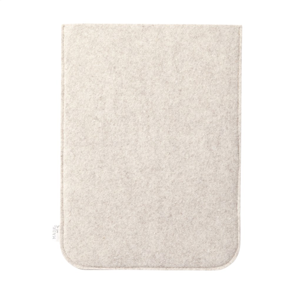 A simple but stylish 14-inch laptop sleeve made from recycled wool felt and vegan leather. A product from the MADE out of brand. The wool felt is made from 50% recycled content, 30% wool and 20% PE. The sleeve has 2 pockets on the front. These are made from beautiful vegan leather created from recycled apple pulp. It has the look and feel of real leather and gives the sleeve a luxurious look. Suitable for storing and safely transporting a laptop up to 14 inches. This top product is handmade. Dutch design. Made in Holland.