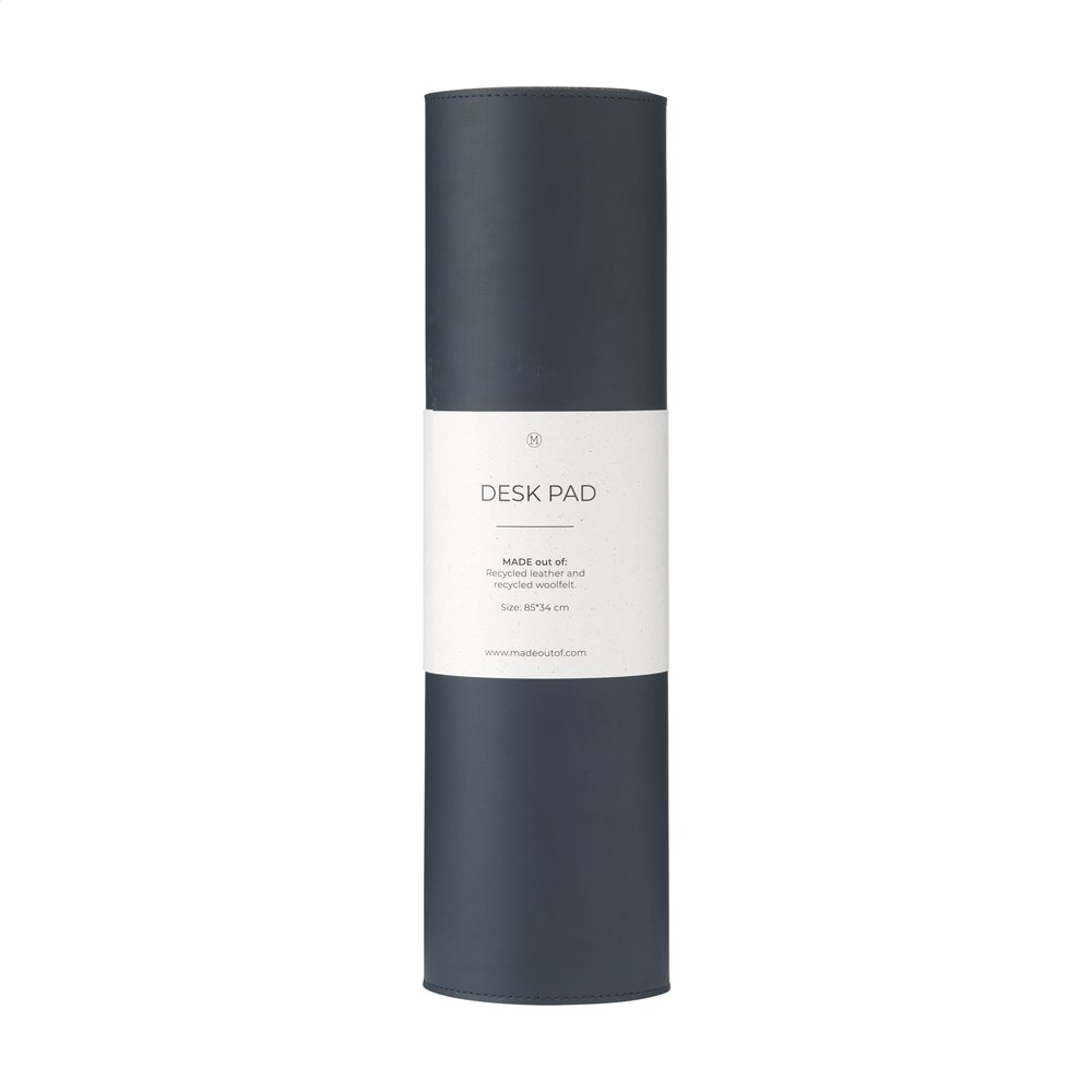 A desk pad made from recycled Italian leather waste and natural binders. A product from the MADE out of brand. The recycled leather is very sturdy, has a nice matte appearance and smells like leather. The coloured top layer is made from a very thin 100% water-based PU coating. The underside is made from recycled wool felt: 50% recycled wool, 30% polyester and 20% wool. Protects your desk and gives your workplace a pleasant & tidy atmosphere. The high-quality material ensures that this pad will last for many hours of work. Handmade. Dutch design. Made in Holland.