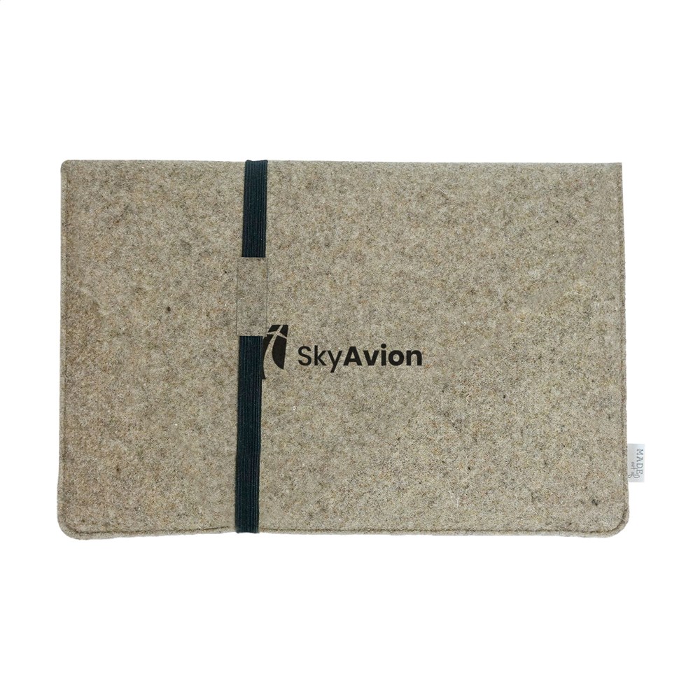 This stylish, designer 15/16-inch laptop sleeve is made from recycled wool felt made from 50% recycled content, 30% wool and 20% PE. A stylish product from the MADE out of brand. Designed for the safe storage and transport of a laptop. This laptop sleeve has a handy elastic closure made from cotton and natural biodegradable rubber. The extra storage compartment has enough space for storing a charger and documents. This material carries the Global Recycled Standard quality mark. Handmade. Dutch design. Made in Holland. The skilful reuse of materials gives them a new lease of life and, at the same time, complies with the principles of the circular economy. The ragging process reduces garments to recycled fibres, separated by colour and type. At the end of the production process, the tuft looks like freshly shorn wool. The material is produced in Italy.