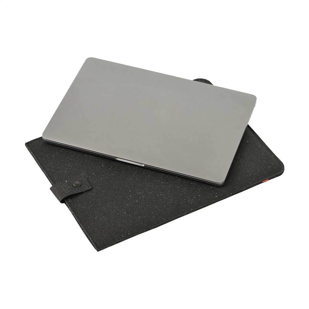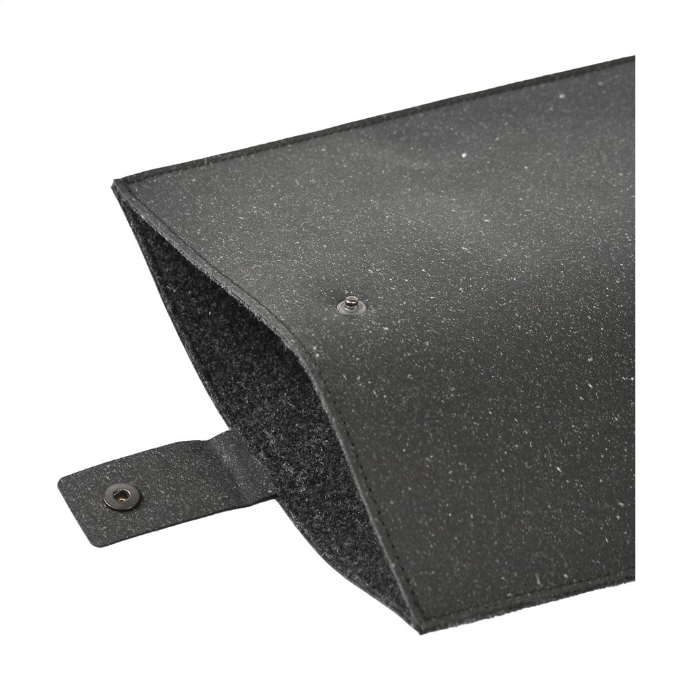 A stylish 14-inch laptop sleeve made from recycled, Italian leather waste and natural binders. A product from MADE out of brand. Suitable for storing and safely transporting a laptop up to 14-inch. The recycled leather is very sturdy, has a nice matt look and smells like leather. The coloured top layer is made of a very thin 100% water-based PU coating. To protect the laptop, the sleeve has a press stud closure and is lined with recycled wool felt made from 50% recycled material, 30% wool and 20% PE. Handmade. Dutch design. Made in Holland.