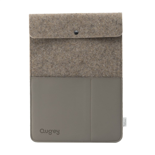 A simple but stylish 14-inch laptop sleeve made from recycled wool felt and vegan leather. A product from the MADE out of brand. The wool felt is made from 50% recycled content, 30% wool and 20% PE. The sleeve has a flap with a press stud closure and features 2 pockets on the front. These are made from beautiful vegan leather created from recycled apple pulp. It has the look and feel of real leather and gives the sleeve a luxurious look. Suitable for storing and safely transporting a laptop up to 14 inches. This top product is handmade. Dutch design. Made in Holland.