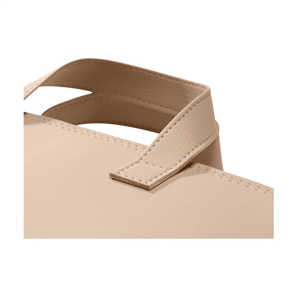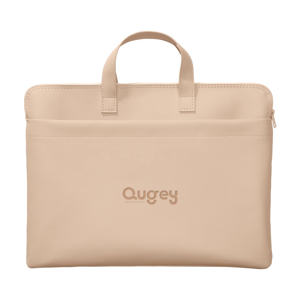 ith a luxurious, design, this 15-16-inch laptop bag from the MADE out of brand, made from vegan leather. The vegan leather is a plant-based alternative to leather and made from recycled apple pulp. It has the look and feel of real leather. The waste from the apples is processed and then combined with a mix of PU, polyester and cotton. This laptop bag has a YKK zipper, 2 handles and a front pocket. The spacious main compartment is neatly finished with a 100% recycled PET lining, and offers enough space for a charger, documents and a notepad. Suitable for storing and safely transporting a laptop up to 16-inches. Keep everything in one place, even when you are on the go. This top product is handmade. Dutch design. Made in Holland.