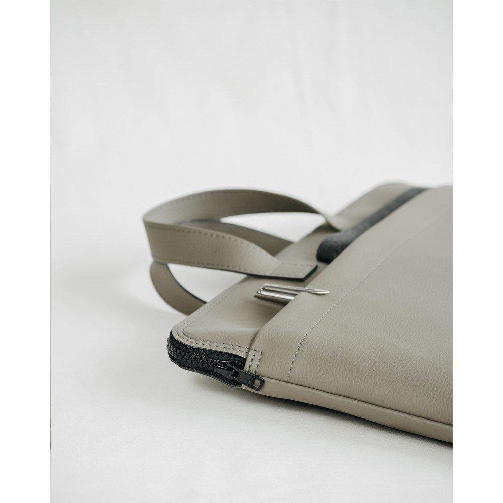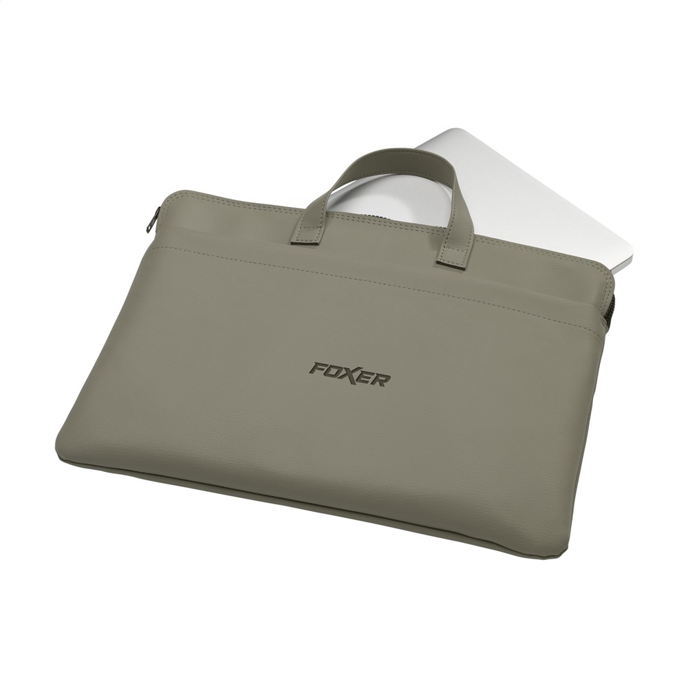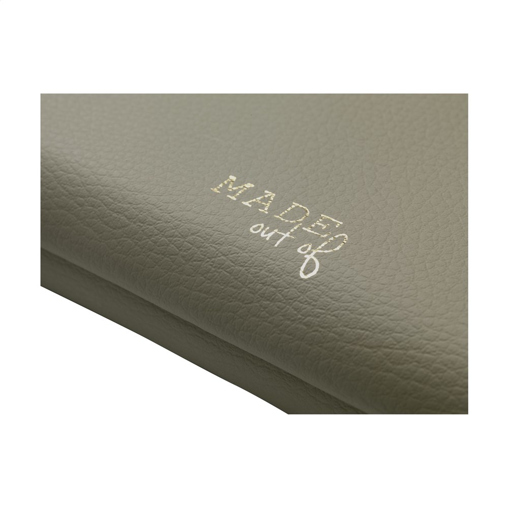 ith a luxurious, design, this 15-16-inch laptop bag from the MADE out of brand, made from vegan leather. The vegan leather is a plant-based alternative to leather and made from recycled apple pulp. It has the look and feel of real leather. The waste from the apples is processed and then combined with a mix of PU, polyester and cotton. This laptop bag has a YKK zipper, 2 handles and a front pocket. The spacious main compartment is neatly finished with a 100% recycled PET lining, and offers enough space for a charger, documents and a notepad. Suitable for storing and safely transporting a laptop up to 16-inches. Keep everything in one place, even when you are on the go. This top product is handmade. Dutch design. Made in Holland.
