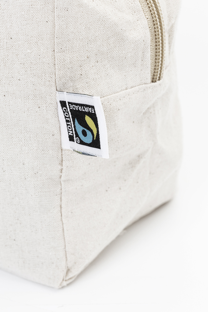 Fairtrade cotton, zipped cosmetic bag with distinctive Fairtrade label. 100% Fairtrade cotton, 180 g/m².