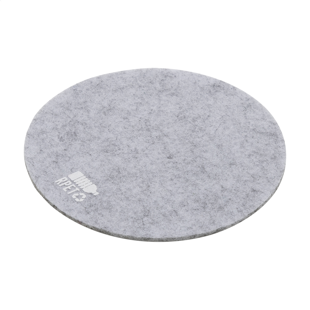 Round RPET felt coaster. With distinctive RPET sign.