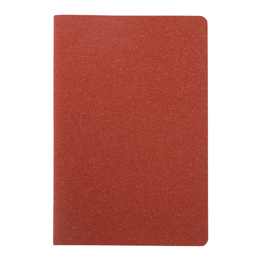 Recycled paper covered notebook with sewn cover and 60 lined sheets in recycled kraft paper. A5 size.
