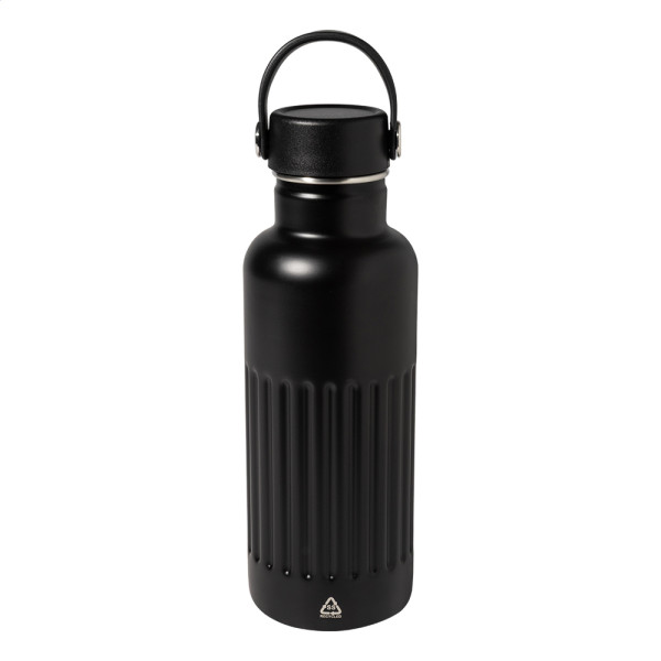 Double-wall, recycled stainless steel vacuum insulated bottle with PP plastic carry lid. 500 ml.