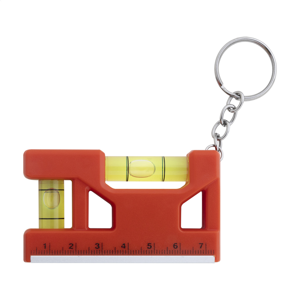 Multifunctional, recycled ABS keyring with metal ring, ruler, magnet and dual spirit levels.