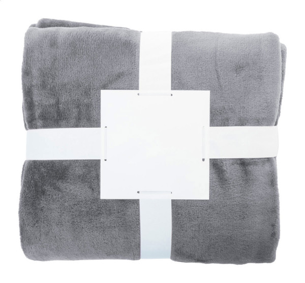 RPET flannel fleece blanket, 260 gr/m². Wrapped in ribbon and printable paper card.