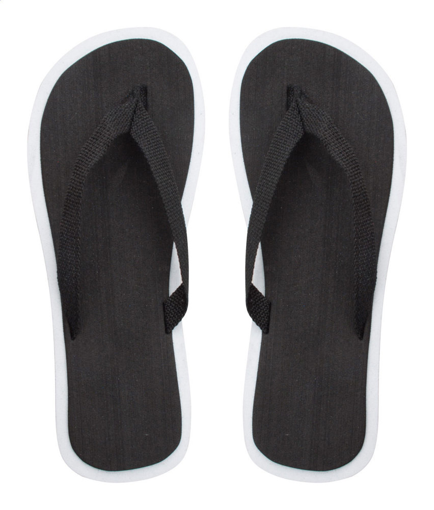 Unisex beach slippers. Made of polyester and EVA.