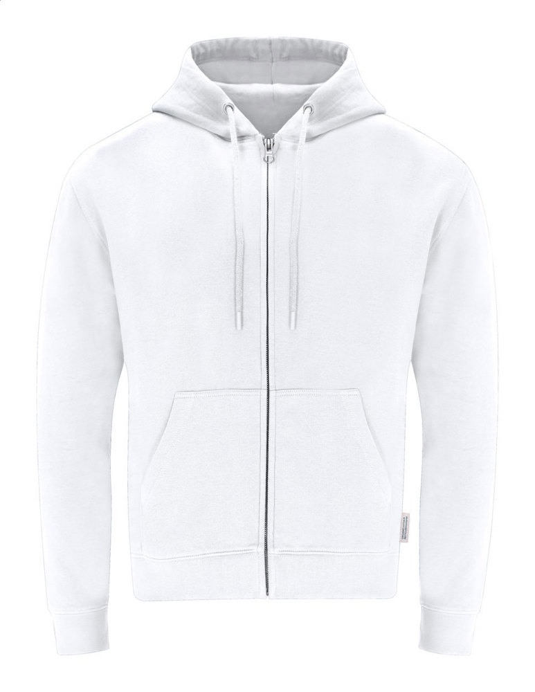 Zipped hoodie sweatshirt with front pockets in 60% organic cotton and 40% RPET polyester, 280 g/m2.