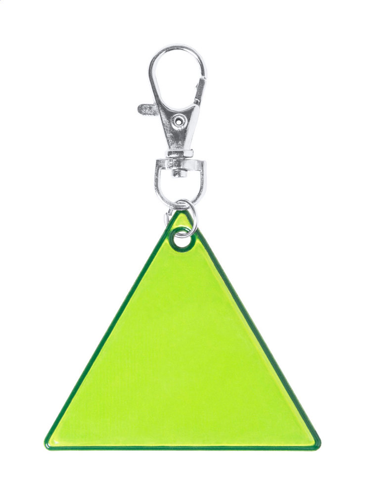 Triangle shaped, reflective keyring with carabiner, PVC. For promotional use only, the product does not qualify as a Personal Protective Equipment.