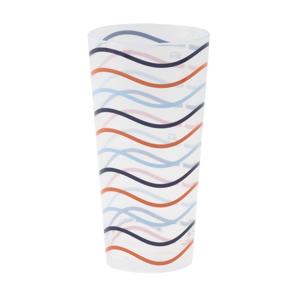 Reusable cup made from high-quality plastic. Including full colour printing all over. This cup is lightweight, easy to clean and stackable, making it a great space saver. Available in a matte and a clear version. BPA-free and Food Approved. Microwave safe and dishwasher-safe. 100% recyclable. This cup contributes to a circular economy. The perfect reusable, personalized cup for events and festivals. Made in Europe. Capacity 500 ml.