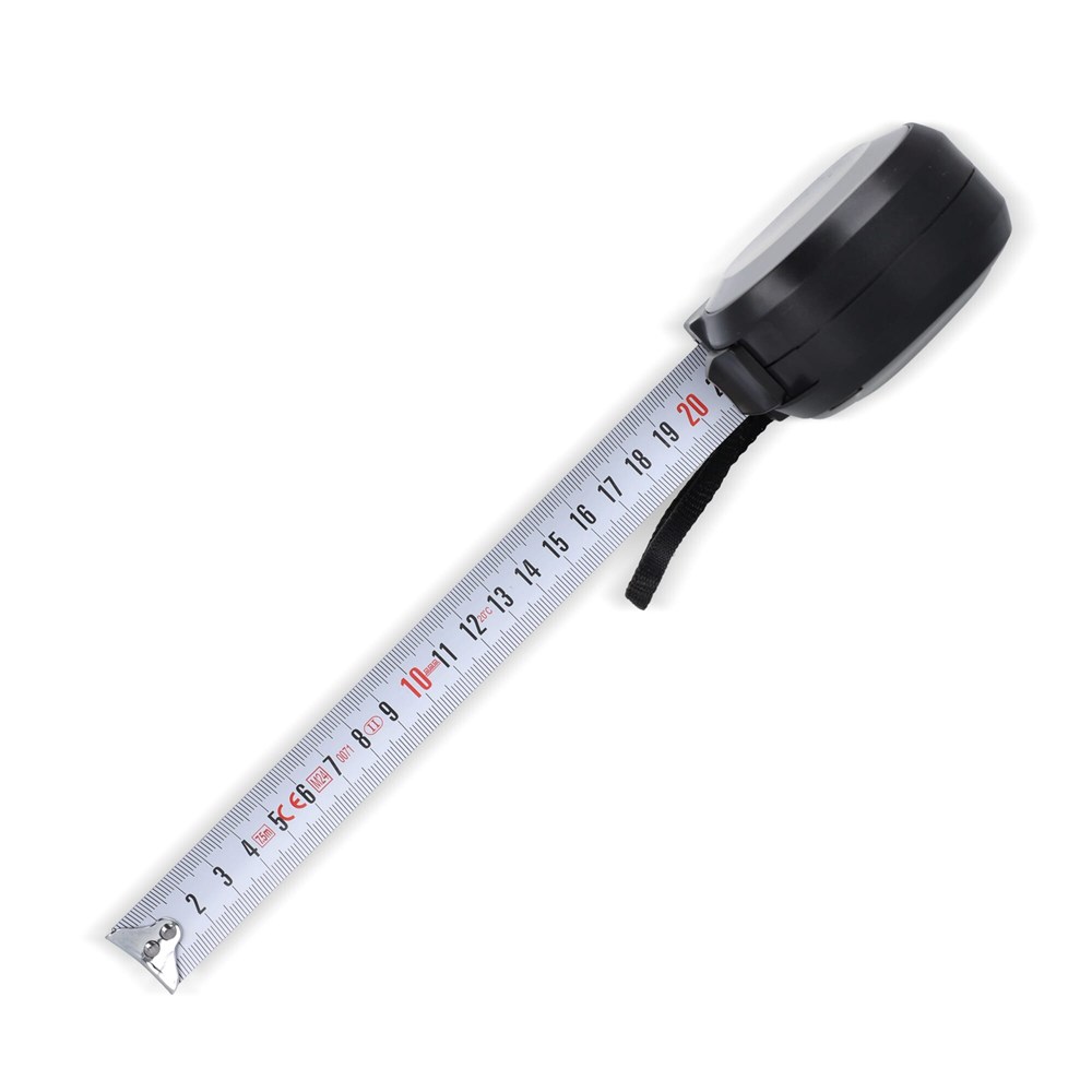 Durable 7.5 m tape measure made from recycled ABS with 25 mm wide tape and a stiffness of up to 2.1 m. Has a flat surface ideal for branding. Meets EEC Class MID II standards for accurate measurements.