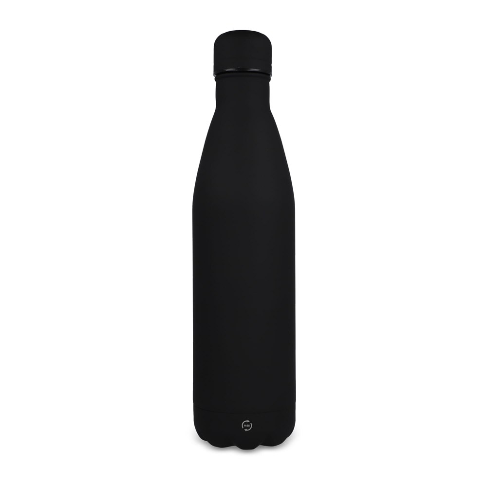 Our popular Swing bottle is now available in recycled stainless steel, and with a buttery soft touch finish. The double walled vaccuum insulated bottle keeps drinks cold or warm for extended periods of time, and is leakproof for on-the-go usage.
